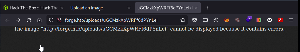 As we found before http://forge.htb/upload allow us to upload files or URLs.